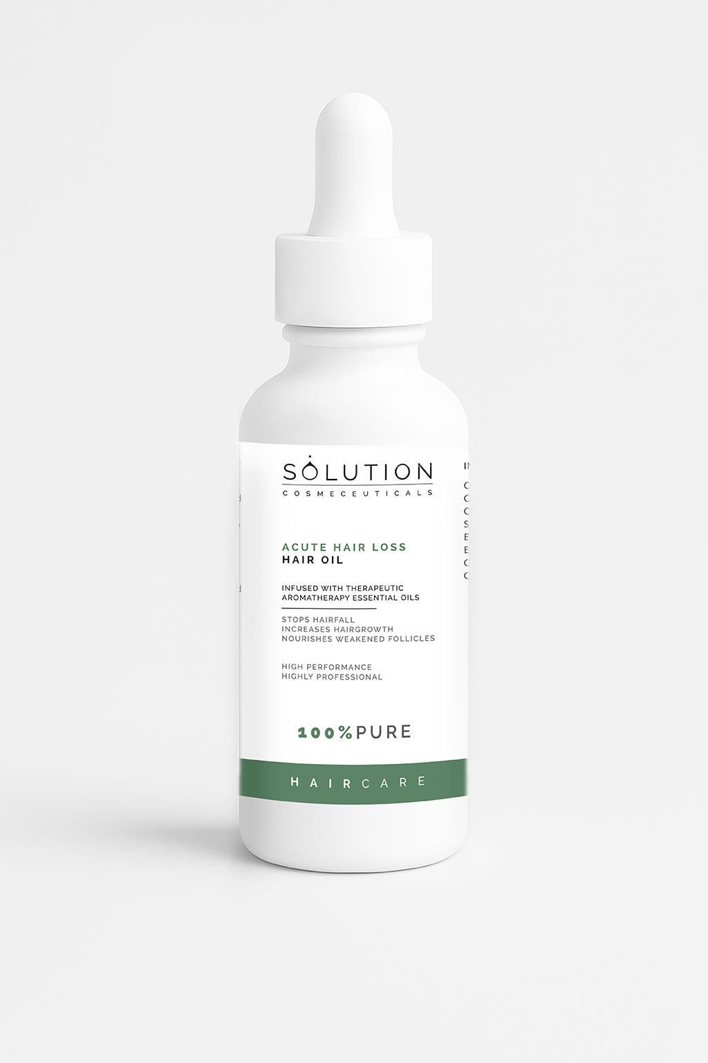 Solution’s acute hair loss hair oil is an exclusive custom blend packed with 13 carrier and essential oils designed for both men and women to combat hair fall, improve hair quality and texture and promote regrowth. Enriched with onion oil, fenugreek oil, rosemary and chamomile essential oil, this chemical-free blend is strongly recommended for providing hair with the essential nutrients and nourishment.
